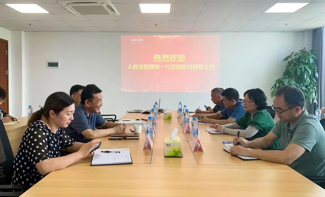 8月10日下午,南昌市中級(jí)人民法院民三庭庭長郭燕、南昌市經(jīng)開區(qū)法院副院長萬建華、南昌市經(jīng)開區(qū)法院綜合審判庭負(fù)責(zé)人孔慶波、南昌市高新區(qū)法院綜合審判庭副庭長黃文亮一行蒞臨我司調(diào)研并指導(dǎo)法律合規(guī)工作。公司董事長陳冰郎、總經(jīng)理丁晨昌、法務(wù)部經(jīng)理劉秀亞及相關(guān)人員參與調(diào)研交流。