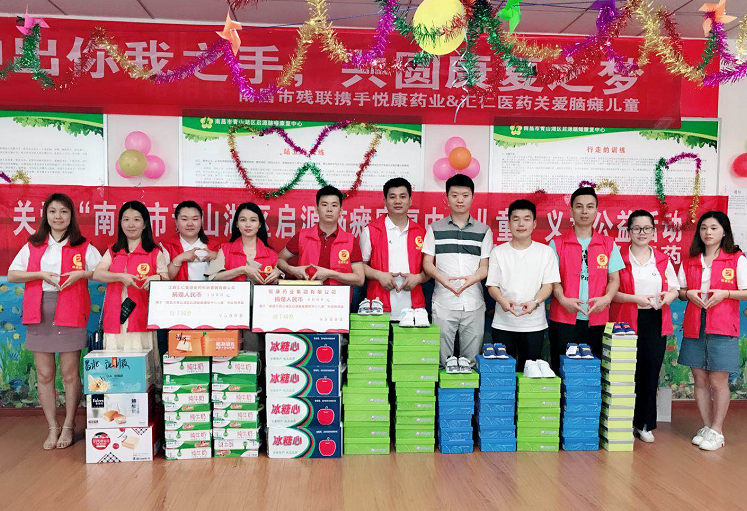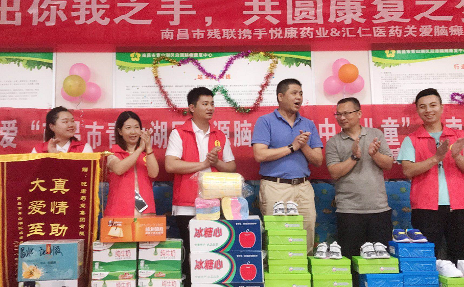 6月8日下午2:00,“關愛腦癱兒童”大型捐贈活動在南昌市青山湖區(qū)啟源腦癱康復中心隆重舉辦。此次活動邀請到了南昌市殘聯(lián)副理事長鄧林和、南昌市殘聯(lián)康復處長于文凱蒞臨現(xiàn)場。匯仁醫(yī)藥團委書記王浩然、副書記雷坤以及悅康藥業(yè)許為杰許經(jīng)理、黃戀黃經(jīng)理等作為愛心企業(yè)代表共同參與了此次活動。大家身穿紅色志愿者服裝,代表著愛心、手捧著鮮花送給腦癱康復中心的孩子,愿他們一樣擁有一份美麗的夢想。